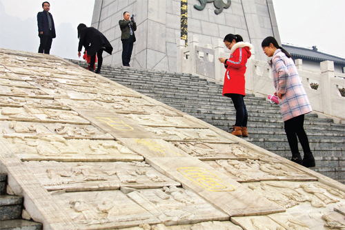 2月11日,原平市天牙山景區(qū)忠孝臺前,游人正在看忠孝雕刻,讀古典忠孝故事,接受忠孝文化再教育。天牙山以“忠孝”主題聞名,很多鮮活動(dòng)人的忠孝故事都能從這里尋覓,成為公眾接受忠孝文化的旅游地。(吉建平 攝)
