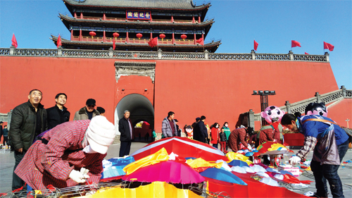 2月17日,市民在忻府區(qū)古城樓廣場(chǎng)觀(guān)看能工巧匠們制作、安裝“鼓舞猴年”大型主題燈展。元宵佳節(jié)將至,忻州城區(qū)處處張燈結(jié)彩,節(jié)日氣氛越來(lái)越濃。(宮清華 攝)