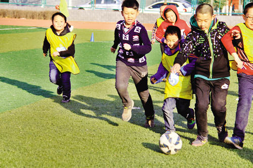 3月12日,原平農(nóng)校足球場(chǎng)內(nèi),小球迷正在進(jìn)行對(duì)抗訓(xùn)練。從小培養(yǎng)兒童熱愛運(yùn)動(dòng),熱愛足球,已成為時(shí)下一種教育理念。周末節(jié)假日兒童不再上各種培訓(xùn)班,踢足球,增體質(zhì),堅(jiān)定自信心,已成為一種習(xí)慣:我運(yùn)動(dòng),我健康,我是最棒的?。ㄆ?攝)