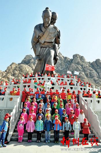 3月28日,原平市興原實(shí)驗小學(xué)某班級利用課余時間,來到天牙山風(fēng)景區(qū)忠孝廣場,開展“青少年朗讀中國古代忠孝小故事”活動,讓孩子們更加懂得以善、以孝對待家人。(褚震 段陸榮 攝)