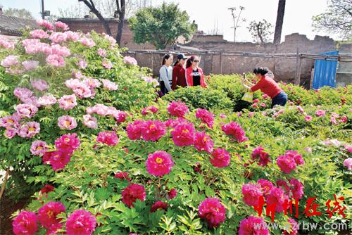 近年來(lái),原平市大力發(fā)展庭院經(jīng)濟(jì)、農(nóng)家樂觀光旅游業(yè),既美化了環(huán)境,又鼓了農(nóng)民錢袋子。圖為柳巷村農(nóng)家院里種植的牡丹競(jìng)相開放,引得游人們爭(zhēng)相賞花拍照。(趙月仁 攝)