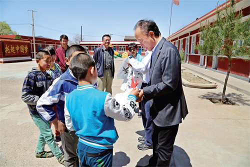 2006 年由省委組織部扶貧工作隊和省僑辦牽線搭橋,由海外華人創(chuàng)建的欣欣教育基金會向靜樂縣康家會小學(xué)捐贈一萬美元資助建設(shè)新校舍,新校舍于2006 年8 月份投入使用。5 月17 日,該基金會副會長丁永慶一行深入靜樂縣,走訪基金會當(dāng)年捐建的康家會小學(xué)。圖為基金會工作人員在和學(xué)生交談,了解學(xué)?,F(xiàn)在存在的問題和困難,希望與該校保持長期固定的聯(lián)系,以便進(jìn)一步的交流和幫助。(閆曉梅 攝)