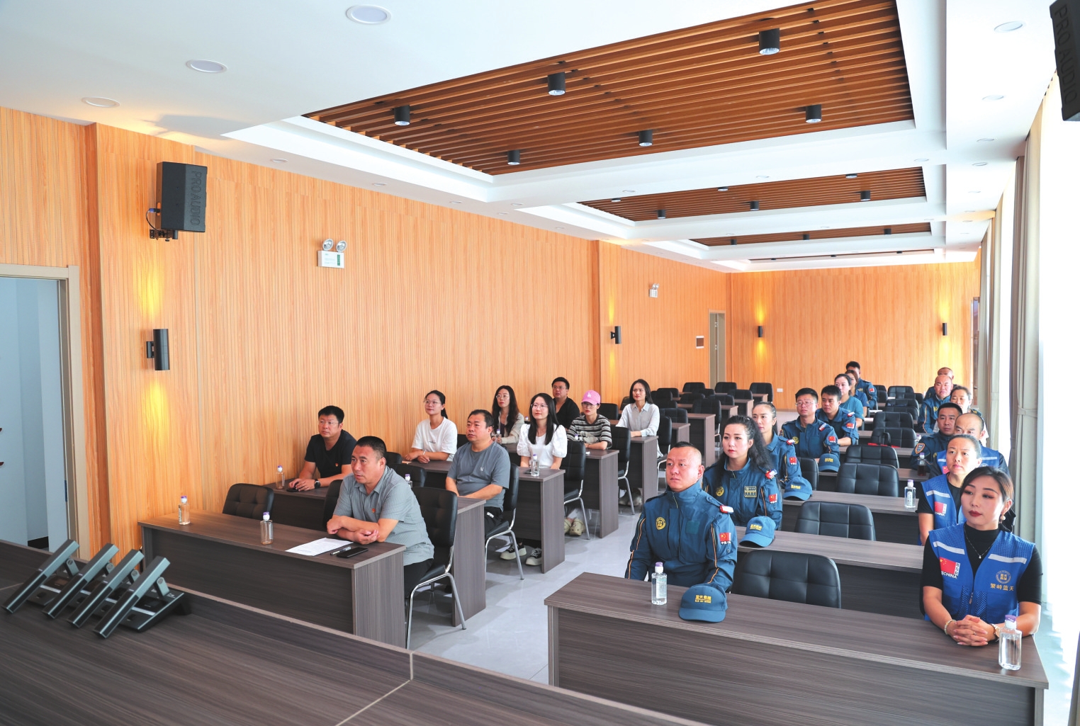 繁峙縣黨群服務(wù)中心干部職工和繁峙縣藍(lán)天救援隊(duì)隊(duì)員一同觀看紀(jì)念大會(huì)。李文浩攝
