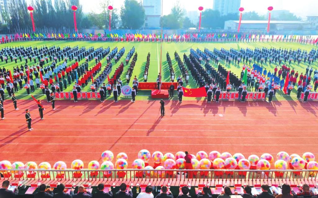 9月28日,原平市范亭中學(xué)校運(yùn)動(dòng)場上彩旗招展、鼓樂喧天,該市中小學(xué)秋季田徑運(yùn)動(dòng)會(huì)開幕,有小學(xué)、初中、高中的38支代表隊(duì)共3000余人參加了開幕式。圖為開幕式現(xiàn)場。(吉建平攝)