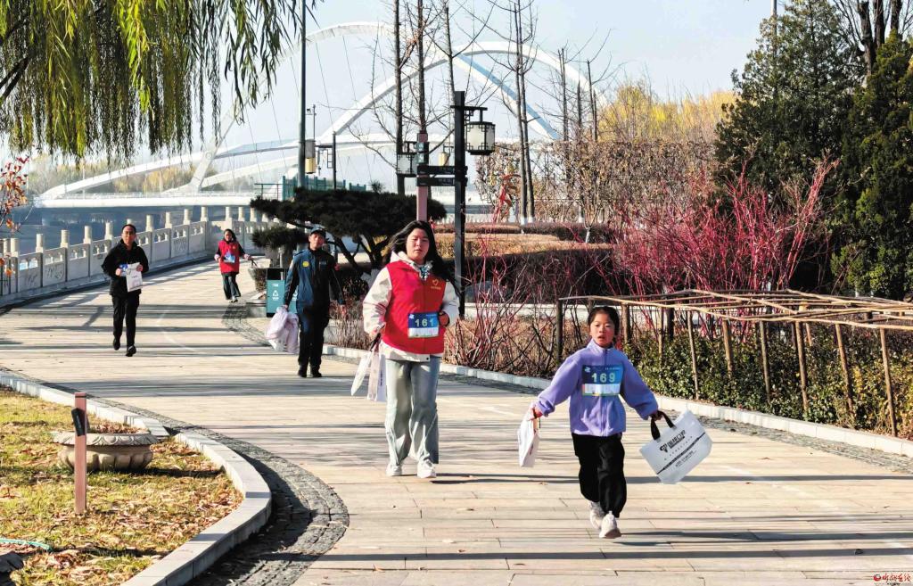 11月15日,“關(guān)愛河湖 保護(hù)母親河”河動快閃跑·全省聯(lián)動點線護(hù)水行忻州站活動在云中河溫泉旅游度假區(qū)舉行。近兩百名參與者手持垃圾袋、夾子,邊慢跑邊撿拾垃圾,將健身與護(hù)河融為一體。 (記者 張存良攝)
