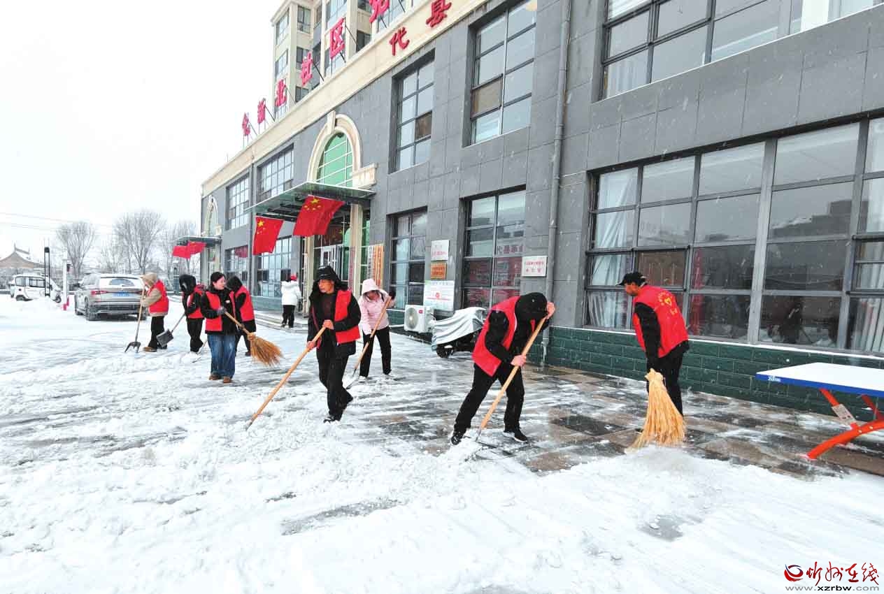 代縣新時(shí)代文明實(shí)踐中心工作人員在新北社區(qū)鏟雪。 高俊偉 劉 睿攝圖