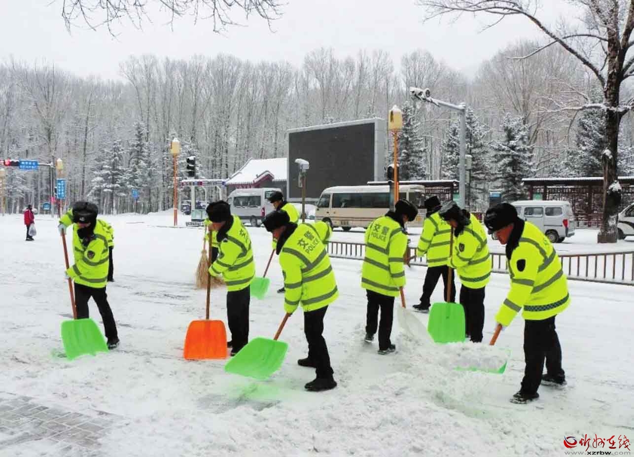 11日傍晚,景區(qū)交警大隊(duì)啟動(dòng)惡劣天氣應(yīng)急預(yù)案,堅(jiān)持“警力跟著雪情走、管控跟著風(fēng)險(xiǎn)走”,對(duì)西線、北線等重點(diǎn)路段實(shí)施臨時(shí)交通管控,并將警力精準(zhǔn)投放到主干道及各關(guān)鍵節(jié)點(diǎn)。12日上午,執(zhí)勤民警、輔警頂風(fēng)冒雪,奮戰(zhàn)在清雪除冰第一線。風(fēng)雪中,一抹抹流動(dòng)的“熒光綠”成為最醒目的安全坐標(biāo),通過現(xiàn)場(chǎng)疏導(dǎo)、隱患排查與實(shí)時(shí)提示,全力筑牢道路交通安全防線。