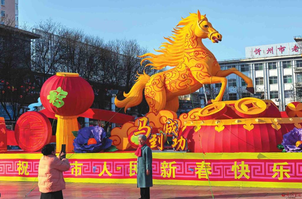 馬年春節(jié)的腳步越來越近了,忻州城區(qū)張燈結彩,處處洋溢著節(jié)日的喜慶氣氛。圖為市民在城區(qū)日月廣場與馬年迎春花燈合影。(