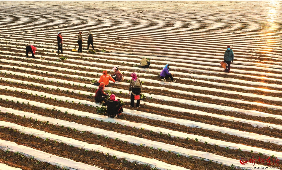 4月2日,忻府區(qū)陽(yáng)坡村,村民正在栽植小白菜。(
