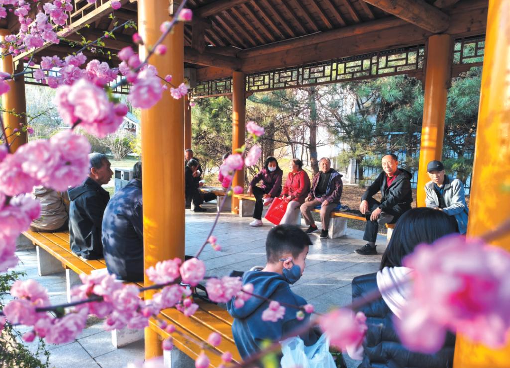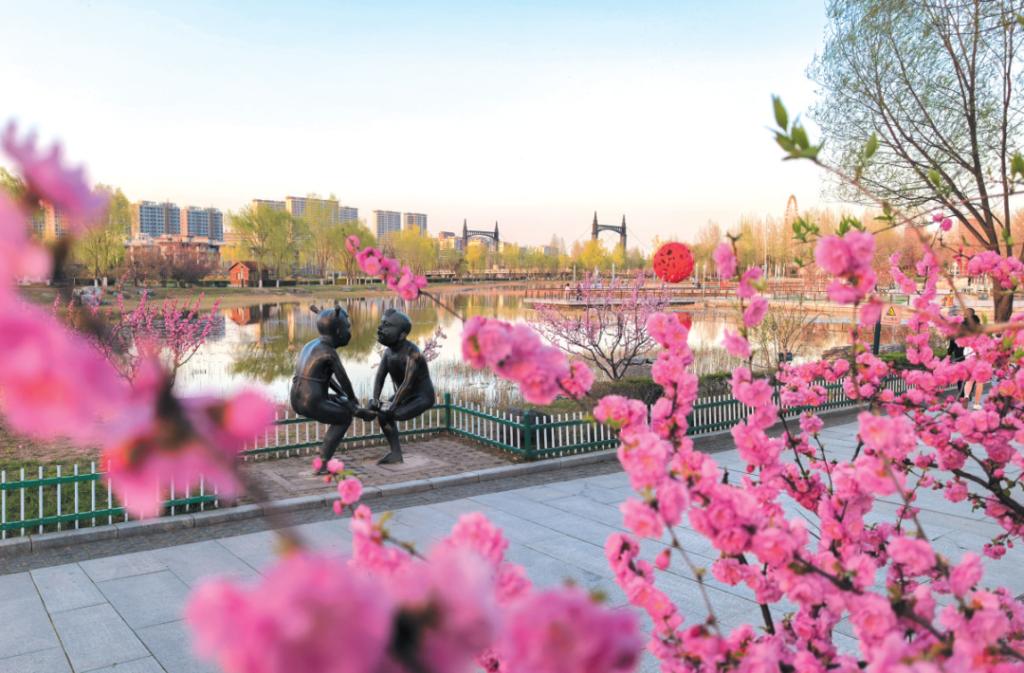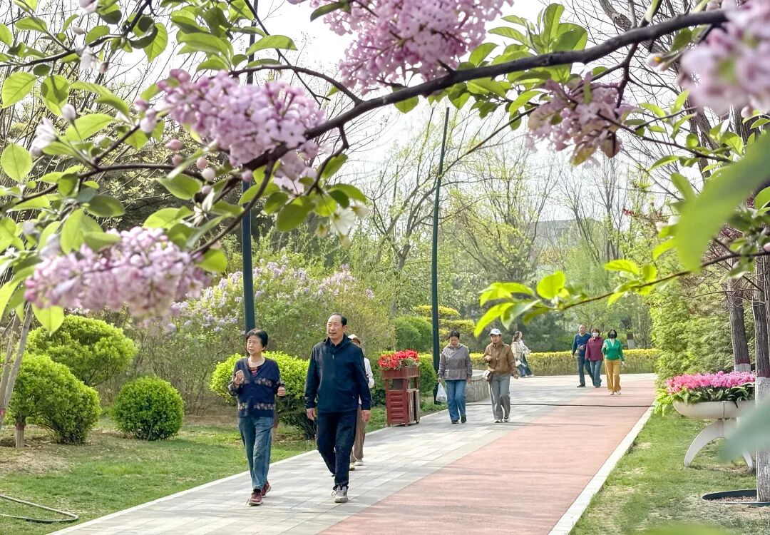 移步城中各大公共空間,更是一步一景:體育公園的桃杏花層層疊疊,迎來最佳觀賞期,粉白色的花瓣綴滿枝椏,與跑道上奔跑的身影相映成趣;人民公園的玉蘭花、碧桃、西府海棠次第開放,映著湖面的波光,岸邊垂柳抽出新綠,與繁花共同構(gòu)成層次豐富的春日圖景;遺山公園里,山桃、丁香香氣彌漫,市民三五成群,沿著步道悠然散步;古城西園的花開得繁盛熱烈,朱紅的古建檐角襯著艷而不俗的花簇,盡顯晉北古城的春日風韻;作為城市生態(tài)名片的云中河景區(qū),步道兩側(cè)的繁花映水,偶有水鳥掠過水面,漾出一岸花影。