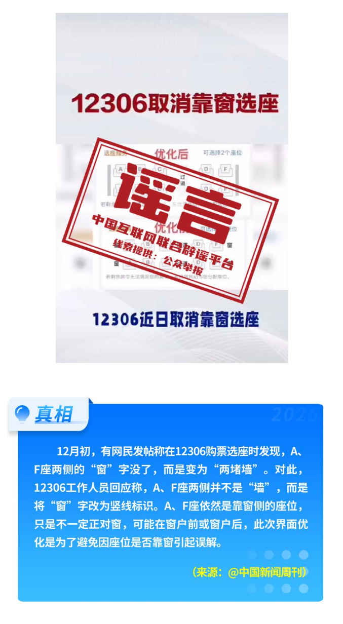 公共政策領(lǐng)域不實(shí)信息誤導(dǎo)公眾。2026年1月1日正式施行新修訂的《中華人民共和國(guó)治安管理處罰法》,網(wǎng)上出現(xiàn)“明年起向好友發(fā)送不雅照片、視頻違法”等誤讀;“一次性信用修復(fù)”政策有著嚴(yán)格的適用邊界,絕非“征信洗白”;火車高鐵“靠窗選座取消”實(shí)為12306購(gòu)票界面優(yōu)化調(diào)整;“海南自由貿(mào)易港封關(guān)等于‘封島’”是對(duì)海南自由貿(mào)易港建設(shè)的整體性誤解。