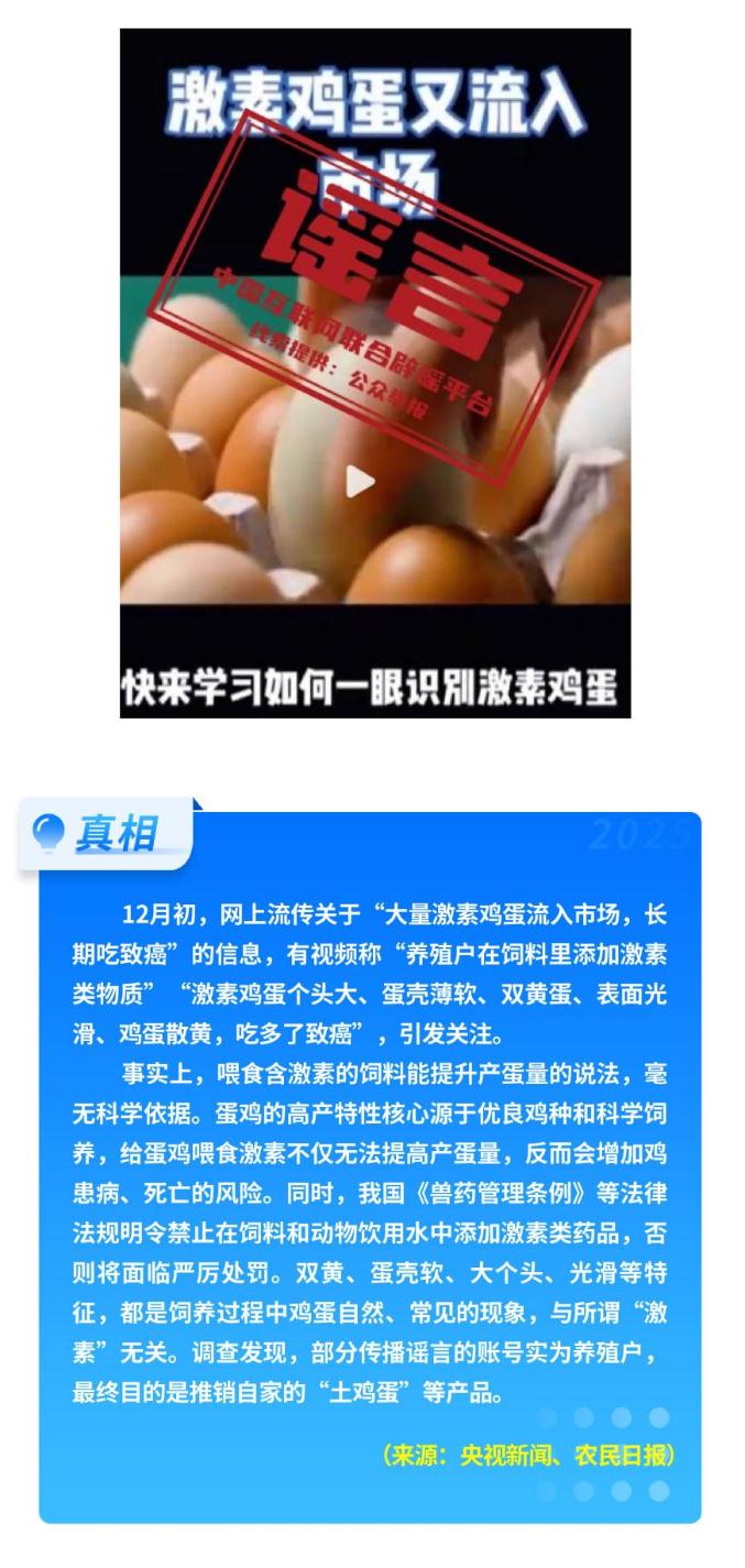 部分網(wǎng)民蹭炒民生話題制造焦慮。秋冬季流感高發(fā),期間流傳“奧司他韋、瑪巴洛沙韋出現(xiàn)耐藥”等不實(shí)傳言,干擾患者合理用藥;“‘液體口罩’一噴就能防流感”的說法,更是夸大宣傳,其所謂“防護(hù)效果”未經(jīng)臨床驗(yàn)證,設(shè)計(jì)與真實(shí)人體情況相去甚遠(yuǎn)。而“激素蛋大量流入市場(chǎng)”等說法毫無科學(xué)依據(jù),其背后是不良商家的推銷策略,加劇了公眾對(duì)食品安全的擔(dān)憂。