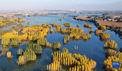 初冬時節(jié),在河北省邢臺市隆堯縣亦城村泜河沿岸,樹葉金黃,與水面、河岸相映襯,勾勒出一幅美麗和諧的自然畫卷。