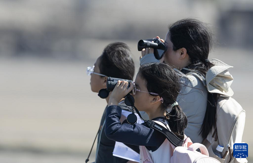 11月9日,泉州市觀鳥學(xué)會(huì)組織小觀鳥愛好者觀測(cè)勺嘴鷸。(新華社記者 魏培全 攝)