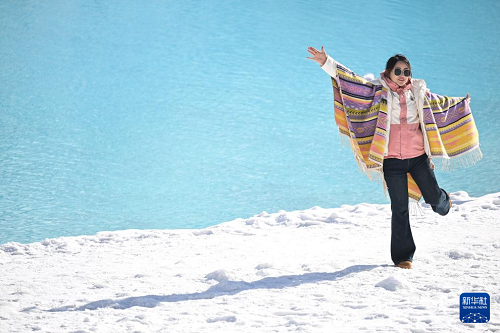 12月25日,游客在青海省海北藏族自治州門源回族自治縣的崗什卡雪峰景區(qū)內游玩。(新華社記者 張龍 攝)