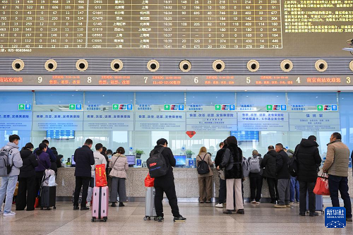 1月19日,旅客在南京南站售票處購(gòu)買(mǎi)火車(chē)票。(新華社發(fā) 蘇陽(yáng) 攝)