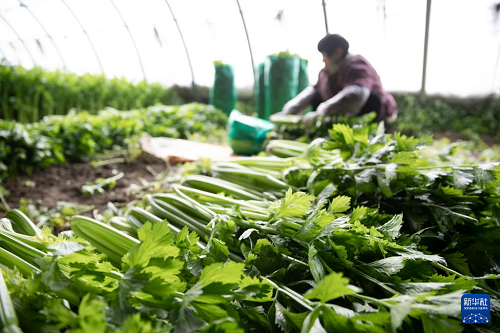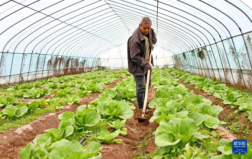 1月20日,在浙江省臺(tái)州市仙居縣官路鎮(zhèn),菜農(nóng)在大棚中為蔬菜松土、除草。(新華社發(fā) 王華斌 攝)