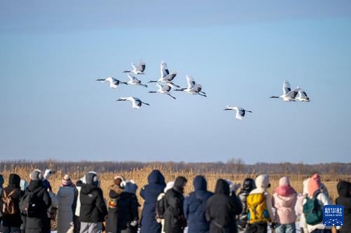 1月21日,游客在黑龍江扎龍國家級(jí)自然保護(hù)區(qū)內(nèi)觀看丹頂鶴。(新華社記者 張濤 攝)