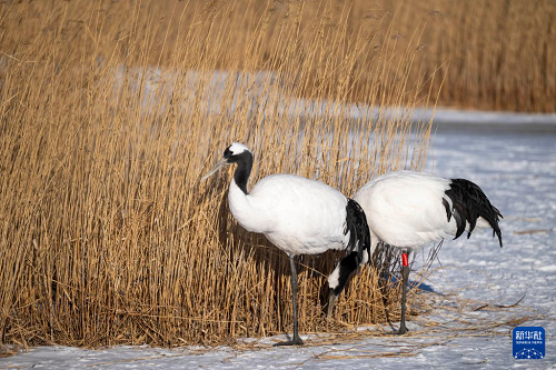 冬日時(shí)節(jié),黑龍江扎龍國家級(jí)自然保護(hù)區(qū)內(nèi)白雪皚皚,丹頂鶴在寒風(fēng)中覓食,上演一幅鶴舞冬日的純凈畫面。