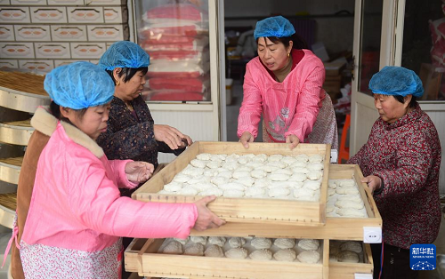 1月22日,滄州市海興縣張常豐村一家面花作坊的工人在“晾花”。(新華社發(fā) 傅新春 攝)