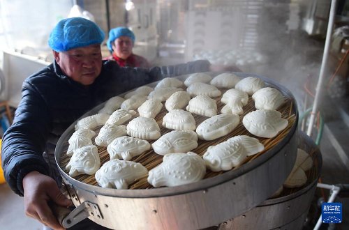 進入臘月,河北滄州部分鄉(xiāng)村的面花作坊進入生產(chǎn)旺季,人們忙著制作各種形狀的面花供應市場。面花是一種用模子塑形加工后蒸制的特色面食,有魚、壽桃、十二生肖等造型,是當?shù)卮汗?jié)期間的特色食品,經(jīng)過揉面、搕花、晾花、蒸花等十多道工序制作而成。