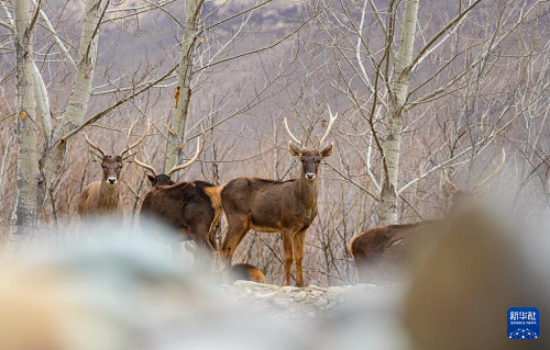 這是3月15日在西藏山南市乃東區(qū)結巴村拍攝的白唇鹿。(新華社記者 晉美多吉 攝)