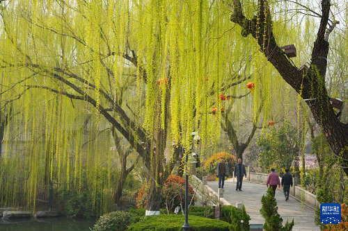 近日,山東省濟(jì)南市氣溫回升,大明湖畔的柳樹披上新綠,吸引游客前來踏春游覽。大明湖位于濟(jì)南市區(qū),湖岸種有大量柳樹,以“四面荷花三面柳,一城山色半城湖”的風(fēng)光聞名。