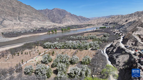 這是4月6日在南長(zhǎng)灘拍攝的梨花(無(wú)人機(jī)照片)。(新華社記者 王鵬 攝)