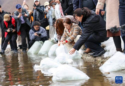 4月15日,吉林省2026年圖們江水生生物資源增殖放流活動在琿春市密江河大麻哈魚國家級水產(chǎn)種質(zhì)資源保護(hù)區(qū)舉行,共放流大麻哈魚52萬尾、馬蘇大麻哈魚8萬尾。魚苗均經(jīng)嚴(yán)格檢疫、計(jì)數(shù),并由公證機(jī)構(gòu)現(xiàn)場公證。