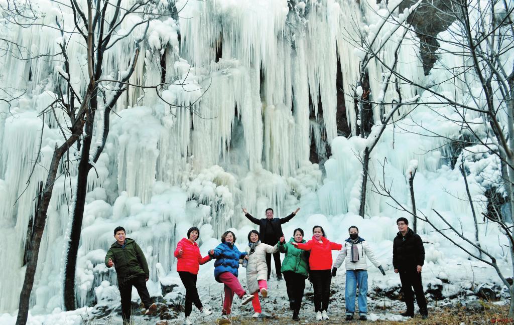 溝底溪水潺潺,崖壁冰掛高懸。一場大雪之后,定襄縣河邊鎮(zhèn)白玉溝的冰瀑又增添了一分奇巧、壯觀的韻味。(張晉蘭 攝影報(bào)道)