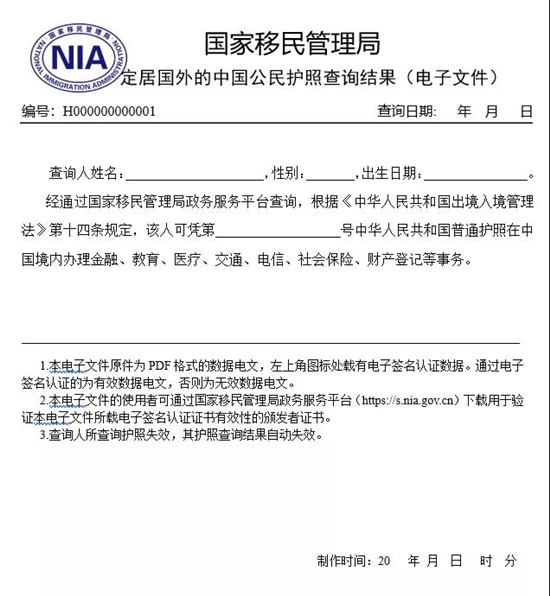 國家移民管理局相關(guān)負(fù)責(zé)人表示,根據(jù)《中華人民共和國電子簽名法》和《中華人民共和國政府信息公開條例》有關(guān)規(guī)定,華僑個人經(jīng)上述途徑所獲得的查詢結(jié)果電子文件已經(jīng)國家移民管理局電子簽名,與同類紙質(zhì)文件具有相同效力,華僑可將電子文件向有關(guān)辦事服務(wù)機(jī)構(gòu)出示或提供。