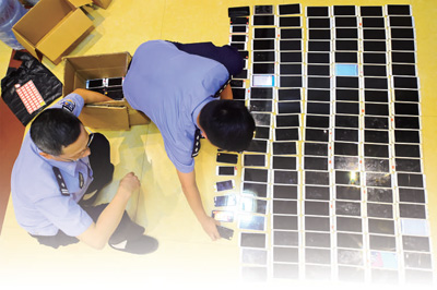 江西省會(huì)昌縣公安機(jī)關(guān)打掉一電信網(wǎng)絡(luò)詐騙犯罪團(tuán)伙并收繳大量犯罪工具。朱海鵬攝(人民視覺)