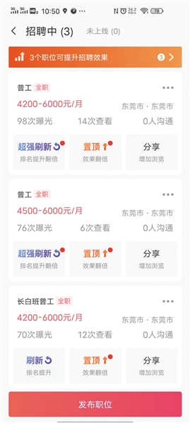 吳林提到,他們購買企業(yè)招聘賬戶后,還要花錢請人在招聘平臺上代發(fā)招聘帖,“發(fā)招聘帖特別嚴格,發(fā)不好就封賬號,發(fā)帖后,怎么能在平臺上排到最前面,也是需要重點考慮的?!?/span>