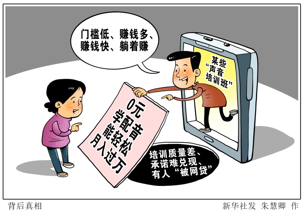 新華社記者發(fā)現(xiàn),有些商家乘機在網(wǎng)絡平臺推銷各類“聲音培訓班”。有些培訓班大多先以“免費專業(yè)聲音培訓”“幫聯(lián)系高收入兼職”等承諾招攬學員,但學員們在高價購買課程后,并未能實現(xiàn)廣告所稱“輕松月入過萬”“培訓完保障就業(yè)”,有的甚至還背上網(wǎng)貸。