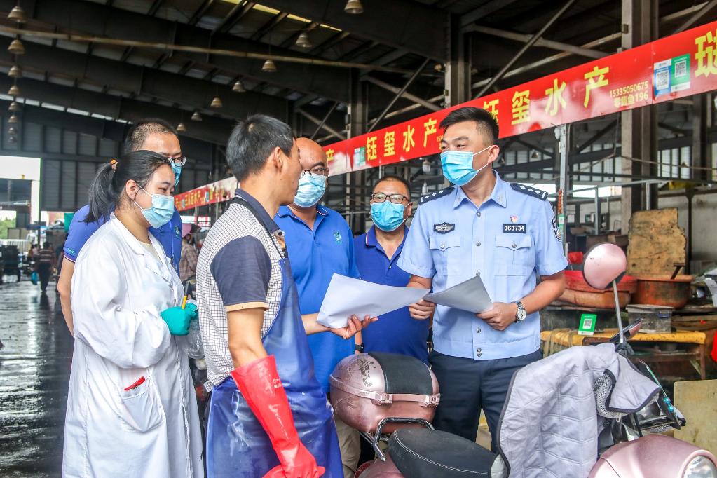公安機關會同相關部門開展聯(lián)合檢查,民警向商戶開展法律宣傳。(公安部供圖)