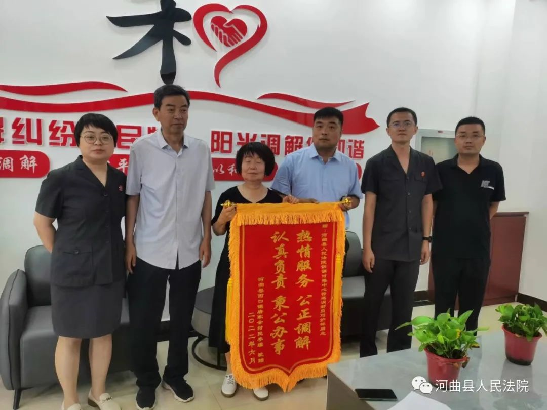 7月1日上午,恰逢建黨101周年之際,當(dāng)事人李某某將一面寫有“認(rèn)真負(fù)責(zé)、熱情服務(wù)、秉公辦事、公正調(diào)解”的錦旗送到河曲縣人民法院訴調(diào)對接中心,以表達(dá)特邀調(diào)解員公正高效、盡職盡責(zé)工作的肯定和感謝。