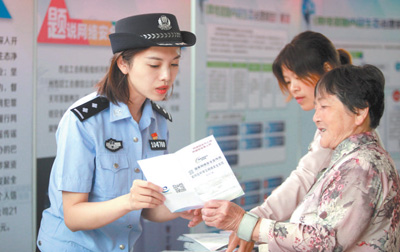 江蘇省揚(yáng)州市,民警為市民講解國家網(wǎng)絡(luò)安全知識。 孟德龍攝(影像中國)