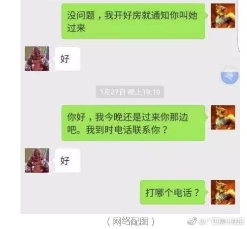 因擔心“服務(wù)員”的“質(zhì)量”不好,阿強讓“夢醒時分”幫忙挑選一個好一點的“服務(wù)員”。對方 說沒問題,并說將“服務(wù)員”的照片發(fā)給他挑選,覺得哪個合心水就安排哪個過來。想不到對方的服 務(wù)這么好,阿強心里非常興奮。 不過,阿強的興奮很快被氣憤所代替——因為當“夢醒時分”從微信上發(fā)過來的女子照片,竟然是阿強在外地打工的老婆!
