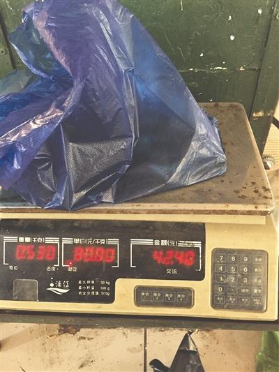 裝袋、充氧氣、過秤,整個(gè)過程,記者并沒有發(fā)現(xiàn)什么異樣?!?0元,給你刨了兩塊四的皮哦?!崩习鍖⑽r遞給記者。