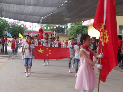 6月1日是“六一”國際兒童節(jié),忻府區(qū)義井鄉(xiāng)北湖學(xué)校的學(xué)生們穿著節(jié)日盛裝,鑼鼓喧天,喜氣洋洋,慶祝屬于他們自己的節(jié)日;升國旗,唱少年先鋒隊(duì)隊(duì)歌,歌頌祖國繁榮昌盛;,贊美兒童在陽光下快樂成長。