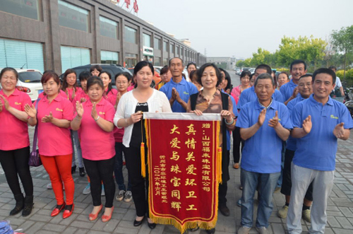 六月七日,忻州知名企業(yè)“山西福來珠寶有限公司”,向忻州市環(huán)衛(wèi)處全體環(huán)衛(wèi)工人捐贈(zèng)1300件價(jià)值近五萬元的T裇衫,供環(huán)衛(wèi)工人夏季作業(yè)避暑,同時(shí)呼吁社會(huì)各界愛護(hù)環(huán)境衛(wèi)生,關(guān)愛環(huán)衛(wèi)工人。市環(huán)衛(wèi)處處長石建新、副處長張林霞一同出席捐贈(zèng)儀式,并代表市環(huán)衛(wèi)處向山西福來珠寶有限公司回贈(zèng)錦旗,以示感謝。