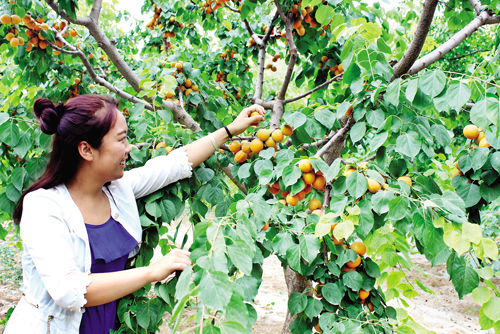 6 月22 日,在原平市子干鄉(xiāng)停旨頭村栗文田經(jīng)營(yíng)的“農(nóng)家樂(lè)”采摘園中,游客正在采摘?jiǎng)倓偝墒斓拇簏S杏。近年來(lái),原平市大力發(fā)展觀光農(nóng)業(yè),促進(jìn)農(nóng)民增收致富,今年黃杏、油桃、酥梨、駿棗又獲豐收,迎來(lái)一批批游客。(曹申義 攝)
