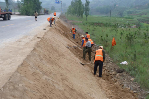 進(jìn)入汛期以來,靜樂公路管理段將路基邊坡加固作為安全隱患治理,保障公路安全暢通的重要養(yǎng)護(hù)工作來抓,堅(jiān)持不懈的做好強(qiáng)基固路工作。確保了預(yù)防性、預(yù)警性、安全性養(yǎng)護(hù)三到位,圖為養(yǎng)路工正在培土加固邊坡。(李永珍 攝)