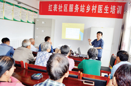 本報(bào)訊 7 月15 日,忻州市中醫(yī)院主任醫(yī)師、心病科專家張崢,來到五臺(tái)縣陽白鄉(xiāng)衛(wèi)生院紅表社區(qū)服務(wù)站,為鄉(xiāng)村醫(yī)生、村民、患者進(jìn)行慢性病防治健康知識(shí)宣傳教授。課上,他向鄉(xiāng)村醫(yī)生重點(diǎn)講授了冠心病的分類、預(yù)防、臨床表現(xiàn),詳細(xì)介紹了高血壓、冠心病治療的臨床經(jīng)驗(yàn),受到了大家的一致好評。