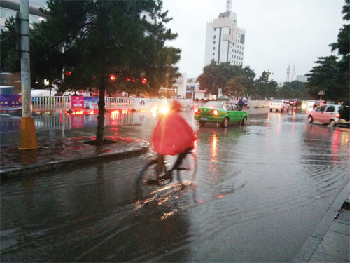 7月19日下午,連陰暴雨稍有緩解。記者首先驅(qū)車趕到市醫(yī)院舊址路段,這里是昔日波濤洶涌的地方,而今是紅綠燈灼灼,街面車來人往,雨流順暢。在人流密集、鋪面林立的老巷利民街,打傘買賣的人們絡(luò)繹不絕。記者沿主干道七一路北上,繞云中河景區(qū)一圈,沿牧馬路返回,再往建設(shè)路逡巡。在忻州污水處理廠,值班的高經(jīng)理告訴記者,市內(nèi)主干、支干及管道全部實(shí)施雨水、污水分流,全部暢通無阻,日處理能力在6萬噸以上。云中河景區(qū)主任孫曉雷早已領(lǐng)著職工沖向一線,在分流壩上調(diào)度洶涌的雨水,嘗試補(bǔ)充需求在70萬立方米以上的河水。記者最后一站來到市氣象局,24小時(shí)全天候值守的預(yù)報(bào)員說,從18日夜色中突來的強(qiáng)降雨,十幾個(gè)小時(shí)達(dá)到近年來最高值110.9毫米,占全年平均降水量1/4強(qiáng)。分為藍(lán)色、黃色、橙色的災(zāi)害預(yù)警信號連升三級。早8時(shí),市委書記李俊明進(jìn)入設(shè)在市水利局的應(yīng)急總指揮部指揮,而市長鄭連生趟雨在城區(qū)幾個(gè)重點(diǎn)地段巡查。風(fēng)雨中,記者既看到一幅幅生動(dòng)畫面,也感受到種種雨中情。無論在哪條街巷,時(shí)常闖入鏡頭、遇到最多的是頭戴斗笠,身著橘紅色工作服的環(huán)衛(wèi)工人,他們冒雨用鐵鍬或掃帚清理下水道口。如果加上交警和消防隊(duì)員,那就是雨中最美的一道風(fēng)景線。記者走進(jìn)已建成的大西高鐵客運(yùn)站,綠蔭蒼翠之中,滴滴雨珠如粒粒水晶豆,在光潔如鼓的柏油路上敲打、濺碎,那真是一種美妙。