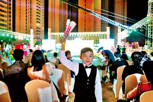 月不醉人人自醉 月光皎潔,清輝遍灑,這夜雖是農(nóng)歷八月十三,月亮卻已迫不及待地圓了起來(lái)?;ê迷聢A、春花秋月、花前月下……月宮是神話中的仙境,而此時(shí)泛華酒店的后花園里也如仙境一般,琴、詩(shī)、書法共同演繹《春江花月夜》,讓現(xiàn)場(chǎng)的500余名觀眾如癡如醉。面容清秀、刺繡大紅旗袍在身的琴師端坐在舞臺(tái)的左側(cè),雙手拂動(dòng),琴聲綿綿,舒心悅耳;鋪紙、執(zhí)筆、蘸墨、揮毫,舞臺(tái)中央的呂峰仿佛置身自家書房之中,墨香中三幅書法作品轉(zhuǎn)瞬完成;“醉眼看世界,朦朧看人生……李白醉了,醉了!”舞臺(tái)右側(cè)的朗誦者孫美琴將李白的一生揉碎在他的詩(shī)中,就著朦朧的月色,用獨(dú)特的聲線摻在她的情感中,沉醉了自己,也迷醉了觀眾。