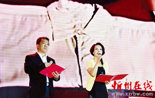 圖為孫美琴和朗誦名家焦陽一起朗誦