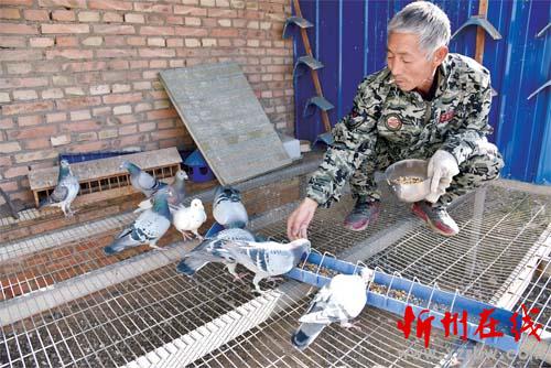 鐵礦老板柳國榮、高建峰于去年1月返鄉(xiāng)創(chuàng)辦了投資300萬元的代縣雁門順峰信鴿養(yǎng)殖場。該場每年消耗飼料高粱、玉米、豌豆等20多噸,可有效帶動(dòng)當(dāng)?shù)氐男‰s糧種植,助推貧困農(nóng)民脫貧增收。圖為飼養(yǎng)員正在喂養(yǎng)信鴿。(石俊文 攝)
