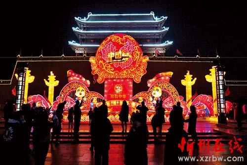 距離元宵節(jié)還有幾天時間,但忻州城區(qū)北城門樓的南北廣場上已展開吉祥喜慶的“中國夢”與“錢袋子”大型燈展,吸引眾多市民前來觀賞。(魯明強 攝)