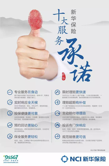 數(shù)十萬(wàn)新華人滿(mǎn)懷誠(chéng)意向您莊嚴(yán)宣誓“十大服務(wù)承諾”,竭誠(chéng)為您提供便捷、專(zhuān)業(yè)的保險(xiǎn)金融服務(wù)!